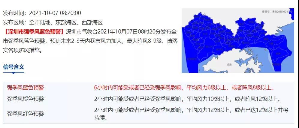 所以,深圳現(xiàn)已發(fā)布的強(qiáng)季風(fēng)藍(lán)色預(yù)警,表示6小時(shí)內(nèi)可能受或者已經(jīng)受強(qiáng)季風(fēng)影響,平均風(fēng)力6級以上,或者陣風(fēng)8級以上。