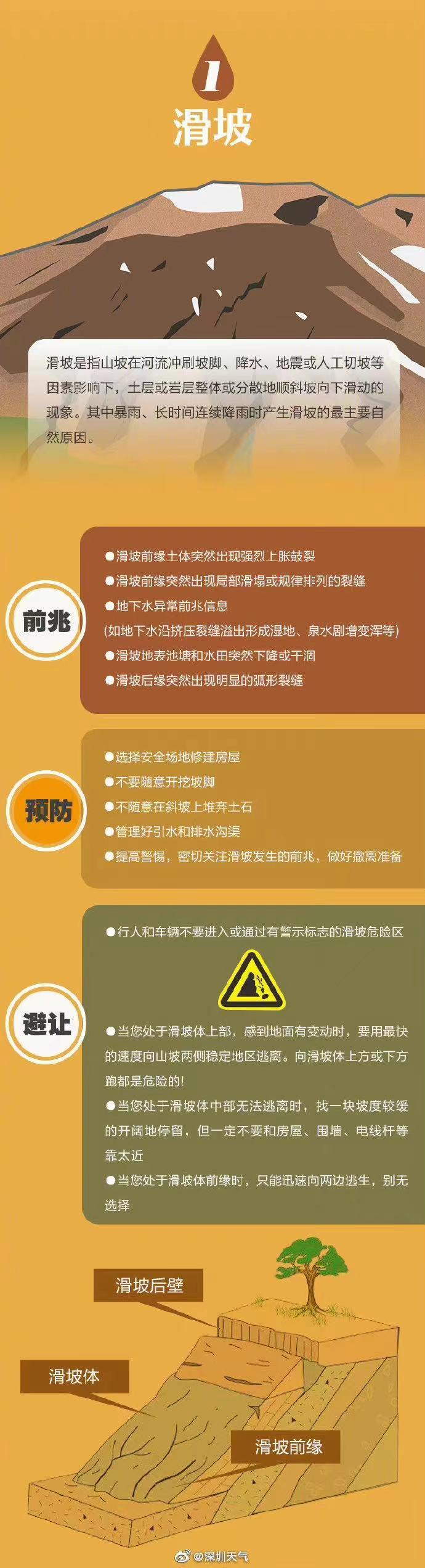所以,深圳現(xiàn)已發(fā)布的地質(zhì)災(zāi)害氣象風(fēng)險(xiǎn)橙色預(yù)警,表示24小時(shí)內(nèi)地質(zhì)災(zāi)害發(fā)生的風(fēng)險(xiǎn)高。其中地質(zhì)災(zāi)害主要包括滑坡、崩塌和泥石流等。
