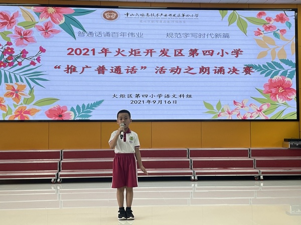 為進一步增強全校師生的語言規(guī)范意識和推廣普通話的參與意識,推動全校語言文字工作的發(fā)展,同時激發(fā)學生的愛國熱情,2021年9月12日至18日是第24屆全國推廣普通話宣傳周,火炬區(qū)第四小學以“普通話誦百年偉業(yè),規(guī)范字寫時代篇章”為主題,開展了推廣普通話系列活動。