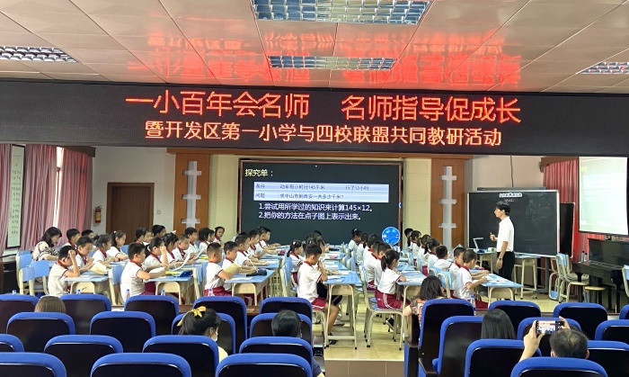 承擔(dān)此次活動的授課教師和學(xué)生是來自開發(fā)區(qū)第一小學(xué)陳開明老師和四年級5班的學(xué)生。陳老師在備課組成員的幫助下不斷調(diào)整教學(xué)方法,在前期多次試教中完善課堂細(xì)節(jié),精準(zhǔn)把握課堂預(yù)設(shè)與教學(xué)效果。讓人眼前一亮的是,在此次展示的四年級上冊《三位數(shù)乘兩位數(shù)》課堂中,陳老師把數(shù)形結(jié)合、算式和豎式相結(jié)合,引導(dǎo)學(xué)生不僅要知道“怎么算”,還要明白“為什么這樣算”,突破常規(guī)算理;新穎的教學(xué)策略,既培養(yǎng)學(xué)生思考的學(xué)習(xí)習(xí)慣,更突出了學(xué)本教學(xué)的理念,同時能有效運(yùn)用舊知遷移完成新知學(xué)習(xí),達(dá)到了很好的教學(xué)效果。給在座的老師們呈現(xiàn)了一場知識的盛宴,帶來了很多啟發(fā)和思考。