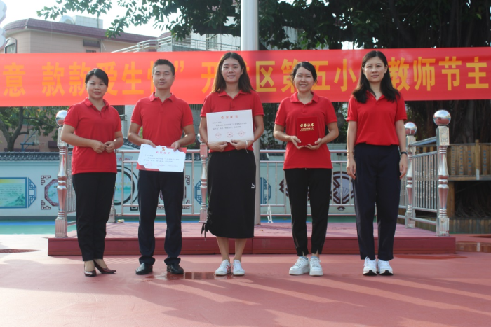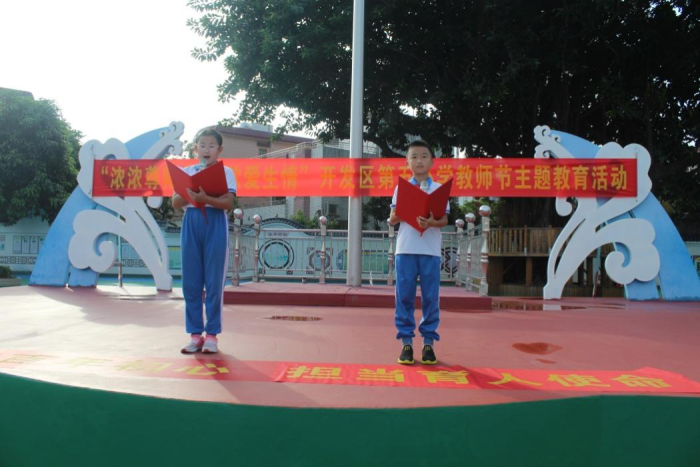 金秋九月,碩果飄香。為了慶祝第37個教師節(jié),弘揚(yáng)中華民族傳統(tǒng)美德,營造全校尊師重教、尊師愛生的濃厚氛圍,9月10日上午,開發(fā)區(qū)第五小學(xué)全校師生在操場開展以“濃濃尊師意,款款愛生情”為主題的教育活動。