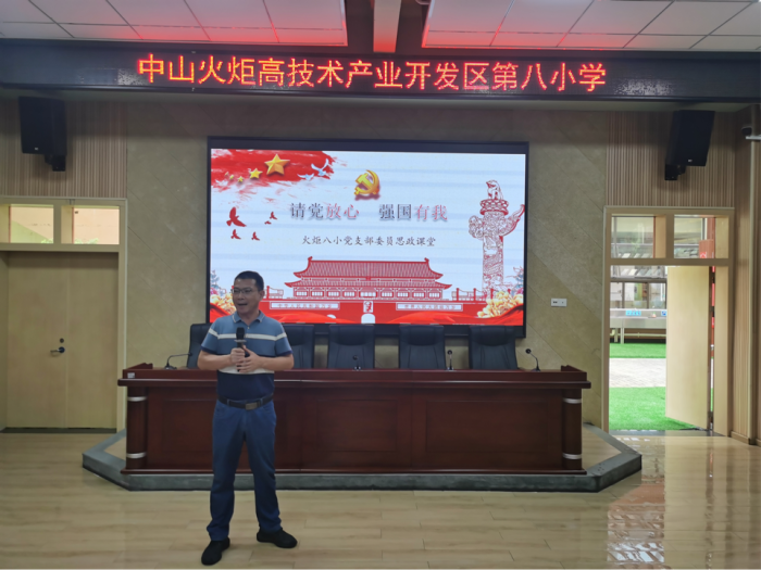 活動(dòng)伊始,由火炬第八小學(xué)黨支部委員鄧龍主任以“請(qǐng)黨放心,強(qiáng)國有我”為主題,給現(xiàn)場的同學(xué)們上了一場別開生面的的思政課。鄧委員帶領(lǐng)全體學(xué)生回顧在慶祝中國共產(chǎn)黨成立100周年大會(huì)上,從天安門廣場發(fā)出的青春誓言,這鏗鏘有力的誓言至今仍然激蕩在全體青少年心中。未來屬于青少年,希望寄予青少年,作為新時(shí)代的青少年,我們要堅(jiān)定不移聽黨話、跟黨走,好好學(xué)習(xí)、強(qiáng)身健體,長大后把青春奉獻(xiàn)給黨和國家最需要的地方,在建設(shè)強(qiáng)國征程中實(shí)現(xiàn)自己的人生價(jià)值。