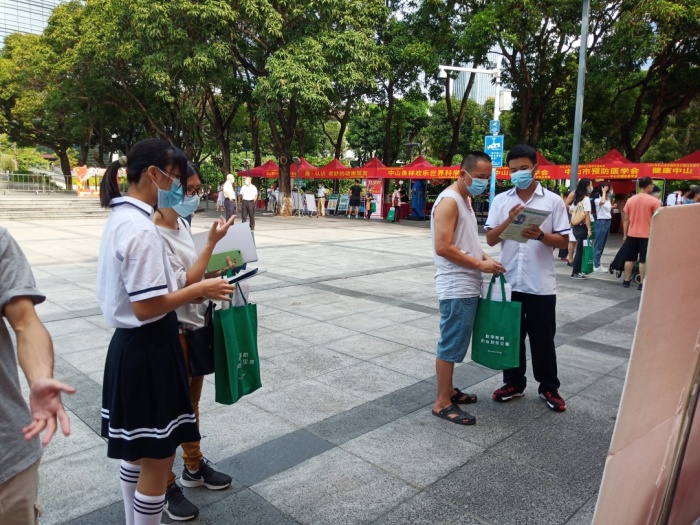 桂山中學陳駿簡老師帶領(lǐng)學校地震測報協(xié)會的同學參加本次活動,他們?yōu)橹猩绞忻衽砂l(fā)了中山市防震減災知識和技能、地震預警系統(tǒng)的原理、中國地震工程的成就等宣傳資料。非常多市民攜帶孩子們前來攤位,陳駿簡老師和地震測報協(xié)會的同學向市民講解了防震減災技能、地震的預警原理、中國傳統(tǒng)文化日晷的原理等。陳老師現(xiàn)場示范什么是正確的地震躲避姿勢,宣講了如何進行有效避震。同時,還向市民介紹了桂山中學的辦學歷史、中山市地震監(jiān)測歷史、中山市地震科普館的歷史等。