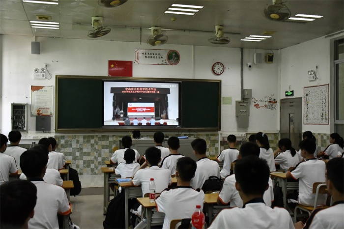 2021年9月10日,中山市火炬科學(xué)技術(shù)學(xué)校2021-2022學(xué)年度第一學(xué)期開學(xué)典禮暨開學(xué)第一課在南朗校區(qū)紫荊堂舉行,全校師生通過教室多媒體直播系統(tǒng)進(jìn)行收看。中山市火炬科學(xué)技術(shù)學(xué)校校長(zhǎng)程少輝,中山市反詐騙中心翠亨新區(qū)分中心劉逸澤警官,南朗街道南苑派出所駐校民警鐘潤(rùn)祥警官,以及南朗街道綜治辦、禁毒辦的工作人員等參加了本次活動(dòng),活動(dòng)儀式由學(xué)校德育處副主任袁建主持。