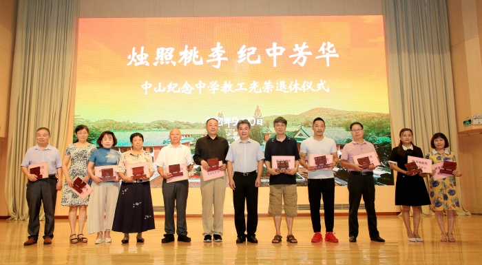 2021年9月10日,第37個教師節(jié),中山紀念中學在音樂廳召開全體教工大會,為25位退休教工舉行集體歡送儀式。