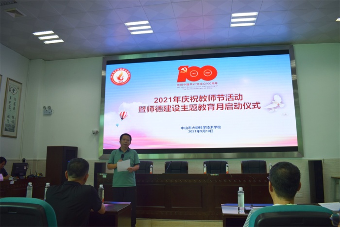 百年大計,教育為本;教育百端,師德為先。在第三十七個教師節(jié)到來之際,為進一步提升學校教師思想政治素質和師德師風水平,切實增強廣大教師教書育人的責任感和使命感,9月10日下午,中山市火炬科學技術學校在開發(fā)區(qū)校區(qū)報告廳隆重舉行2021年慶祝教師節(jié)活動暨師德建設主題教育月啟動儀式?;顒佑蓭熧Y建設處廖江主任主持,開發(fā)區(qū)及南朗兩校區(qū)的教師共同參加了該活動。