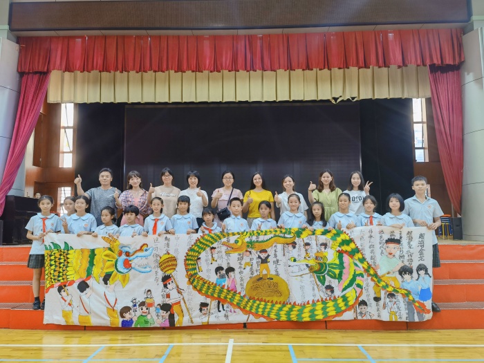 為了弘揚(yáng)優(yōu)秀傳統(tǒng)文化,培養(yǎng)學(xué)生民族精神和愛國主義精神,讓非遺文化進(jìn)入校園。學(xué)校創(chuàng)作主題選取中山市非物質(zhì)文化遺產(chǎn)“起灣金龍”為主題,活動(dòng)前,教師通過給學(xué)生講解起灣金龍的來歷,讓孩子們對(duì)起灣金龍有進(jìn)一步的了解。隨后,20余名學(xué)生一起在畫卷上盡情繪畫。