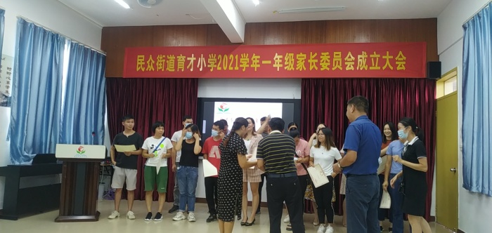 第二個(gè)議程:由李紅梅主任解讀育才小學(xué)家長(zhǎng)委員會(huì)管理制度,全體參會(huì)人員通過制度。然后宣讀各班家委成員、志愿交通協(xié)管員名單,還以班級(jí)為單位頒發(fā)相應(yīng)的證書,并合影留念。