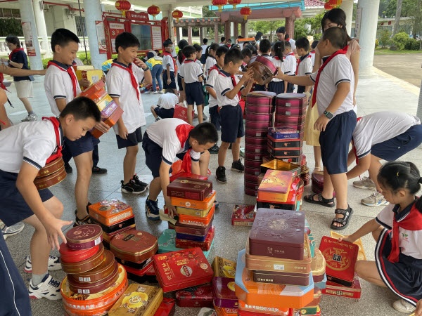 全校師生積極響應(yīng)學(xué)校的倡議,并參與了“綠色中秋餅盒變寶盒,回收換回饋——月餅盒回收”中隊活動。少先隊員們紛紛從家里帶回來了各種精美的月餅盒,在各中隊家長志愿者的協(xié)助下,齊心協(xié)力對月餅盒進行了整理和分類,全校共收集到月餅紙盒328個,月餅鐵盒650個,一共978個。