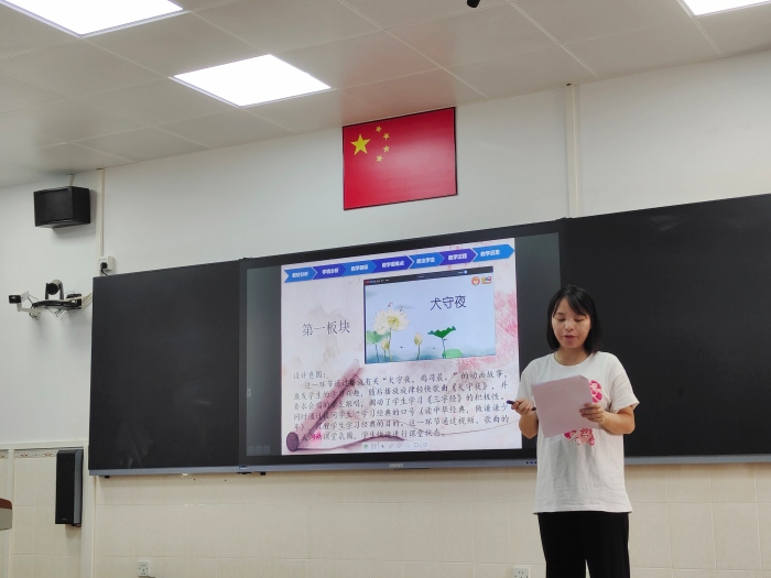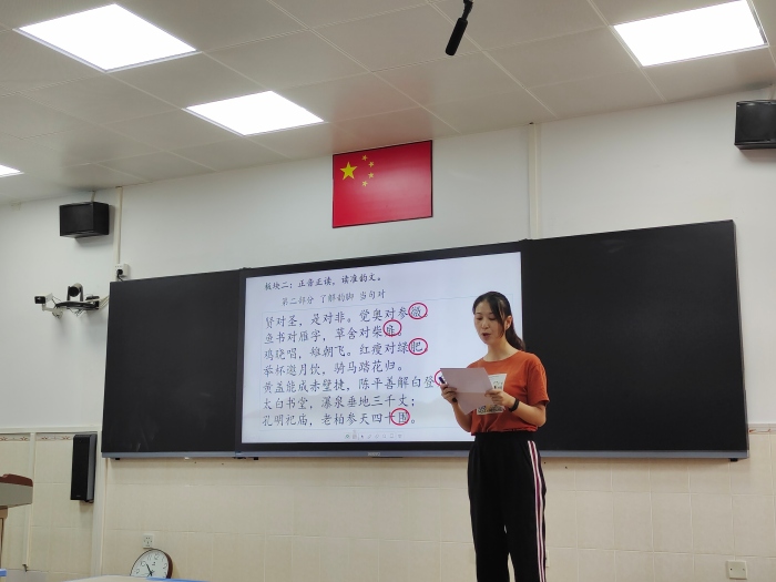 16日,組內初賽如期舉行。13節(jié)課,13種風格;13位青年教師,13種看家本領。授課內容均選自國學啟蒙、經典詩詞等中華優(yōu)秀傳統(tǒng)文化。有的老師運用視頻、圖片等多媒體手段,帶領學生走進詩詞,感受詩詞的韻味;有的老師深挖文本,由朗讀到吟誦再到配樂吟詠,由淺入深,引導學生讀中悟,體會詩人的心境;有的老師從實際出發(fā),提舉生活實例,讓學生在生活中接受傳統(tǒng)文化的熏陶,讓傳統(tǒng)美德如春風潤物細無聲般地浸潤孩子的心田。執(zhí)教的老師扎實的課堂基本功、豐厚的文化底蘊以及靈動的課堂設計讓人印象深刻,課堂效果可謂精彩紛呈。